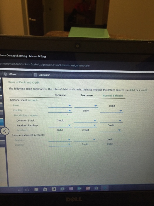 Rules of debit and credit the following table summarizes the rules of debit and credit. For each item, indicate whether it is an asset, liability, revenue or expense by putting a check ( ) mark on the proper column and indicate whether the normal balance is a debit or a credit. Asset debit credit debit liabilities credit debit credit owner's equity: