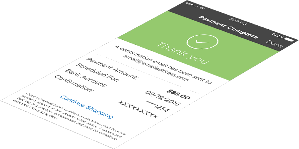 Online At My Kohl S Charge We Accept Bank Account Information.